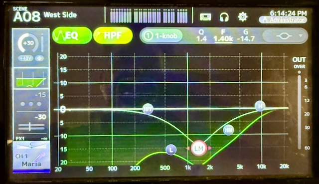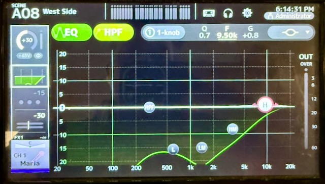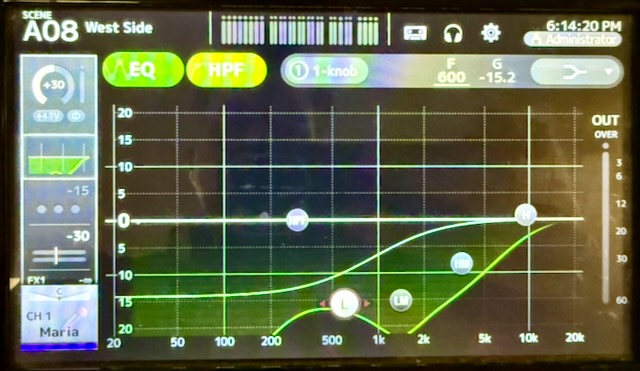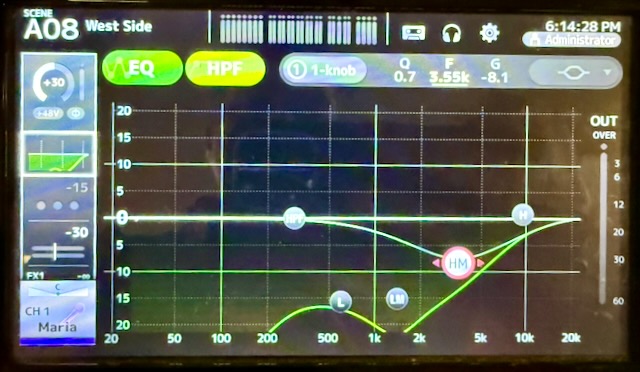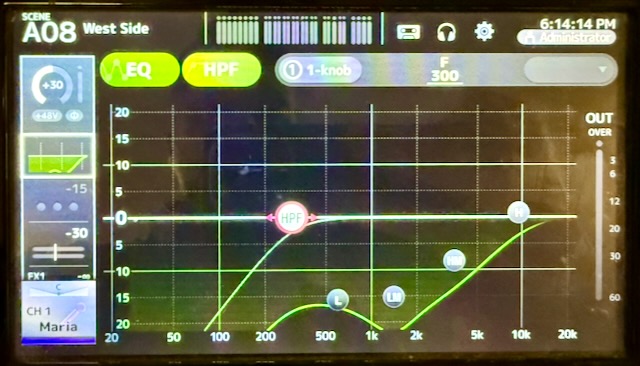 This is by no means a "set-it and forget-it" range of adjustments but a basic starting point for vocals. Always adjust beyond these defaults from in the house, listening from various locations though you can always start from the middle of the audience if time is a factor. Once you apply this default to the first vocal channel you can use the Yamaha's TF-5 menu to easily copy and paste EQ settings to other vocal channels.